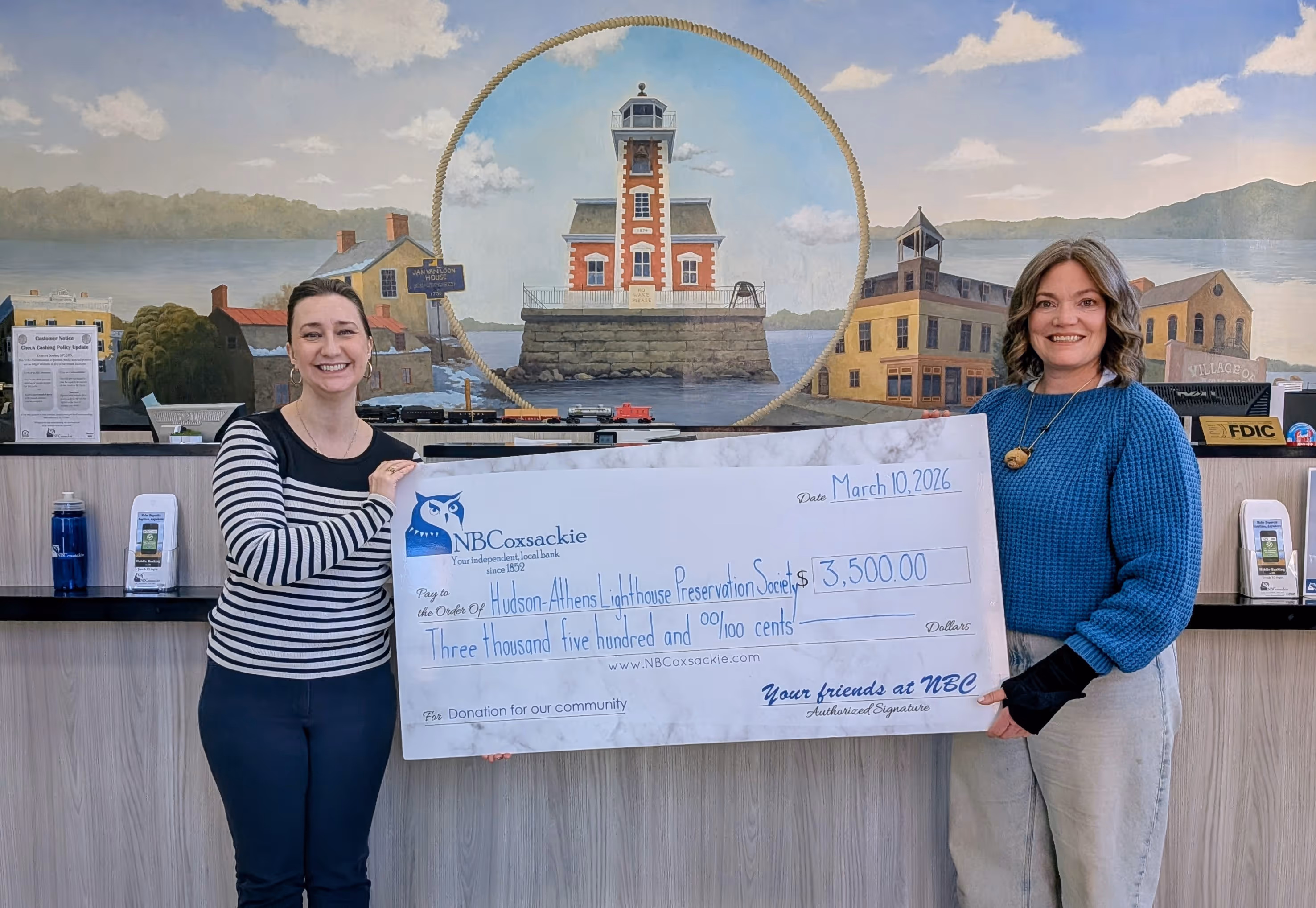 COXSACKIE―National Bank of Coxsackie (NBC) is proud to announce its recent $3,500 donation to the Hudson-Athens Lighthouse Preservation Society.